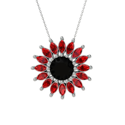 Siyah zirkon ve garnet 14 ayar beyaz altın kolye (40 cm beyaz altın rolo zincir)