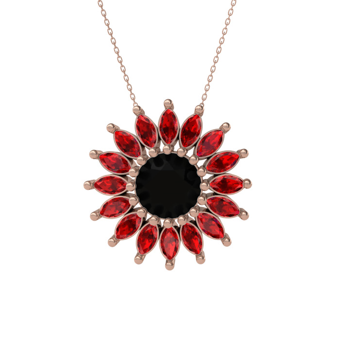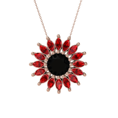 Siyah zirkon ve garnet 14 ayar rose altın kolye (40 cm rose altın rolo zincir)