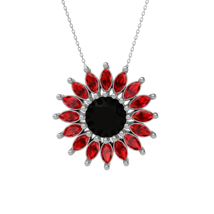 Siyah zirkon ve garnet 8 ayar beyaz altın kolye (40 cm gümüş rolo zincir)