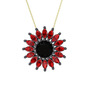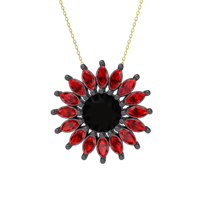 Siyah zirkon ve garnet 925 ayar siyah rodyum kaplama gümüş kolye (40 cm altın rolo zincir)