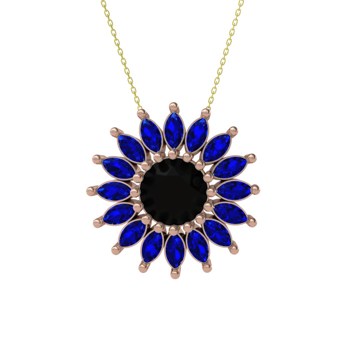 Siyah zirkon ve lab safir 925 ayar rose altın kaplama gümüş kolye (40 cm altın rolo zincir)