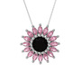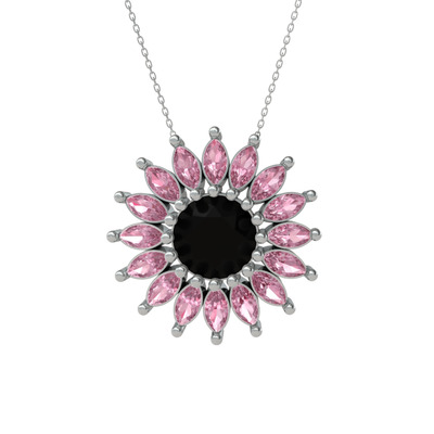 Siyah zirkon ve pembe kuvars 14 ayar beyaz altın kolye (40 cm beyaz altın rolo zincir)