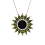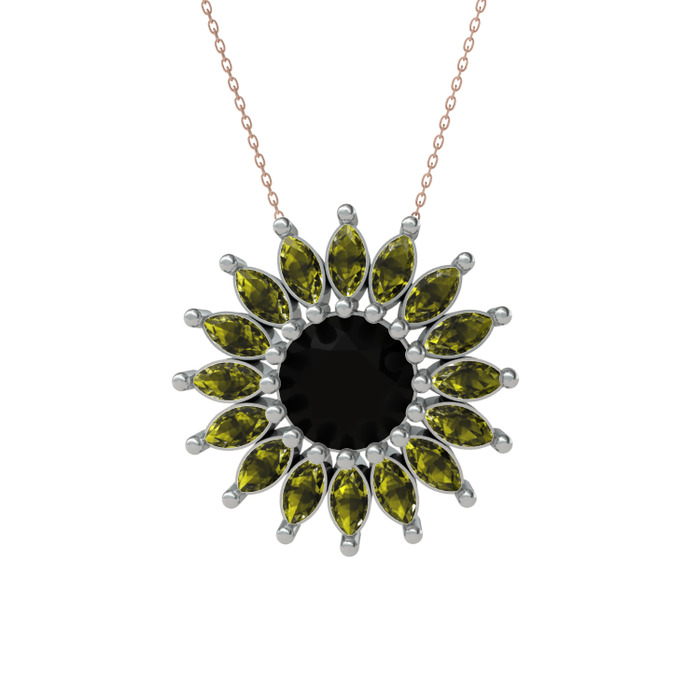 Siyah zirkon ve peridot 14 ayar beyaz altın kolye (40 cm rose altın rolo zincir)