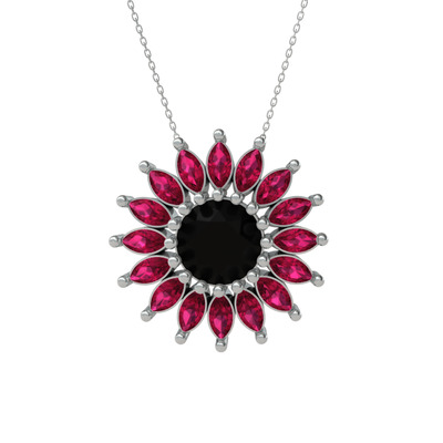 Siyah zirkon ve rodolit garnet 18 ayar beyaz altın kolye (40 cm beyaz altın rolo zincir)