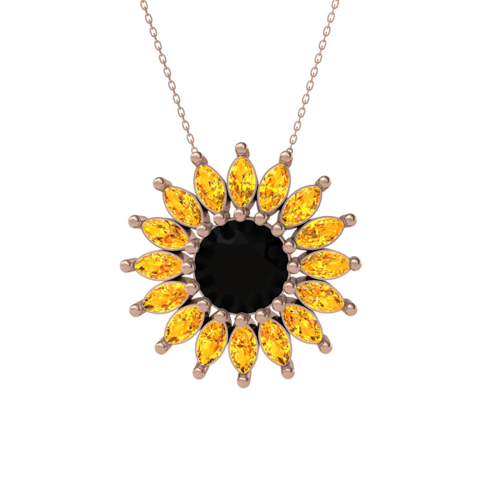 Siyah zirkon ve sitrin 8 ayar rose altın kolye (40 cm rose altın rolo zincir)
