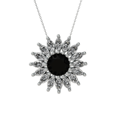 Siyah zirkon ve swarovski 14 ayar beyaz altın kolye (40 cm gümüş rolo zincir)