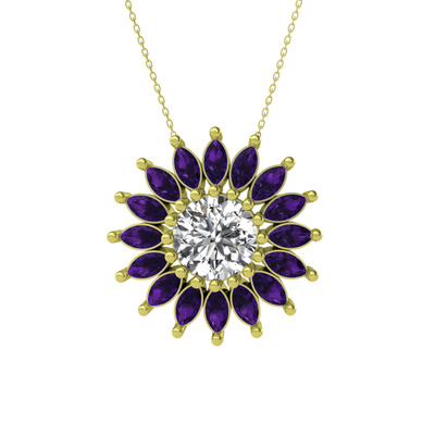 Swarovski ve ametist 925 ayar altın kaplama gümüş kolye (40 cm altın rolo zincir)