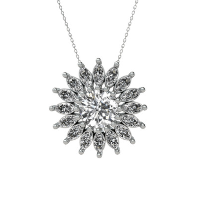 Swarovski ve beyaz zirkon 8 ayar beyaz altın kolye (40 cm beyaz altın rolo zincir)