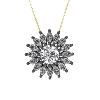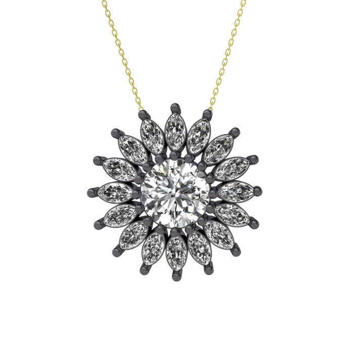 Swarovski ve beyaz zirkon 925 ayar siyah rodyum kaplama gümüş kolye (40 cm altın rolo zincir)