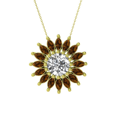 Swarovski ve dumanlı kuvars 8 ayar altın kolye (40 cm altın rolo zincir)