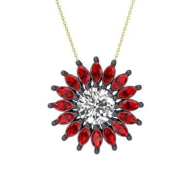 Swarovski ve garnet 925 ayar siyah rodyum kaplama gümüş kolye (40 cm altın rolo zincir)