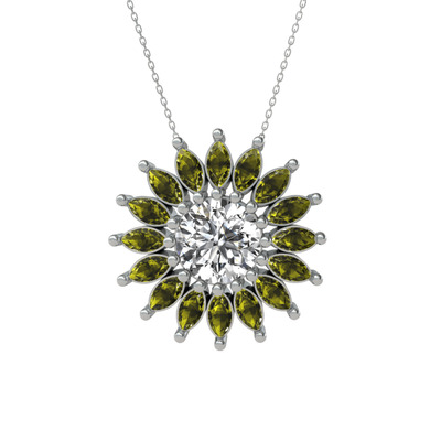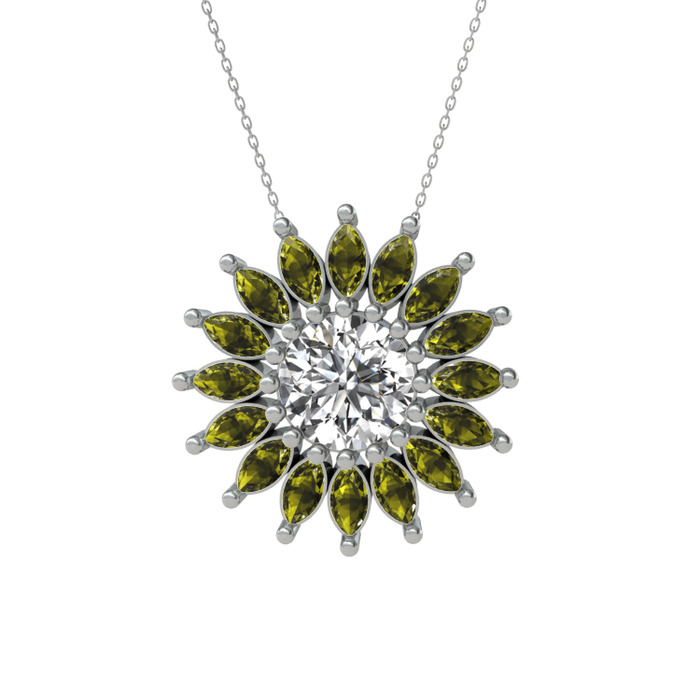 Swarovski ve peridot 14 ayar beyaz altın kolye (40 cm beyaz altın rolo zincir)