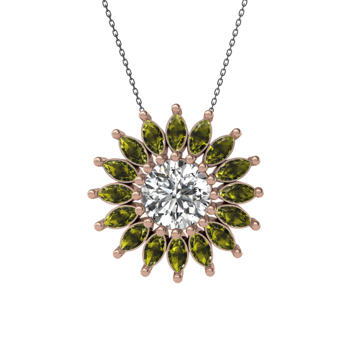 Swarovski ve peridot 14 ayar rose altın kolye (40 cm gümüş rolo zincir)