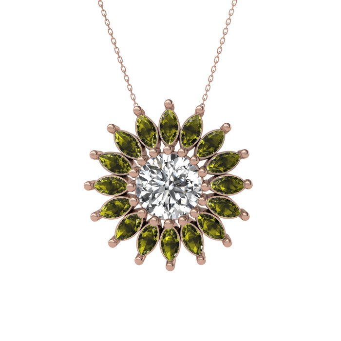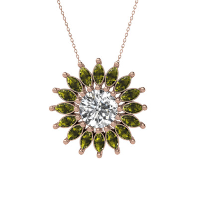 Swarovski ve peridot 14 ayar rose altın kolye (40 cm rose altın rolo zincir)