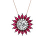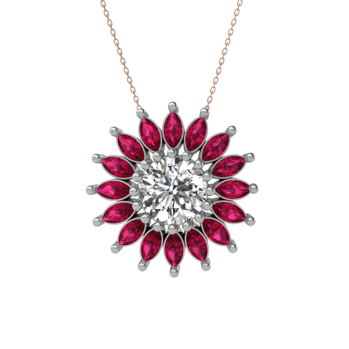 Swarovski ve rodolit garnet 14 ayar beyaz altın kolye (40 cm rose altın rolo zincir)