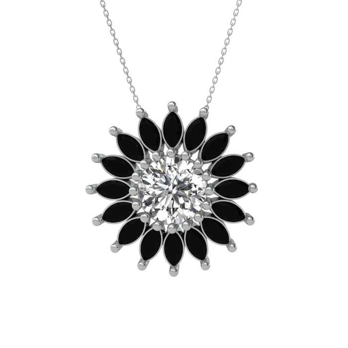 Swarovski ve siyah zirkon 18 ayar beyaz altın kolye (40 cm gümüş rolo zincir)