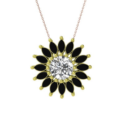 Swarovski ve siyah zirkon 8 ayar altın kolye (40 cm rose altın rolo zincir)