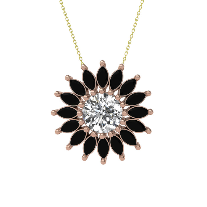 Swarovski ve siyah zirkon 925 ayar rose altın kaplama gümüş kolye (40 cm altın rolo zincir)