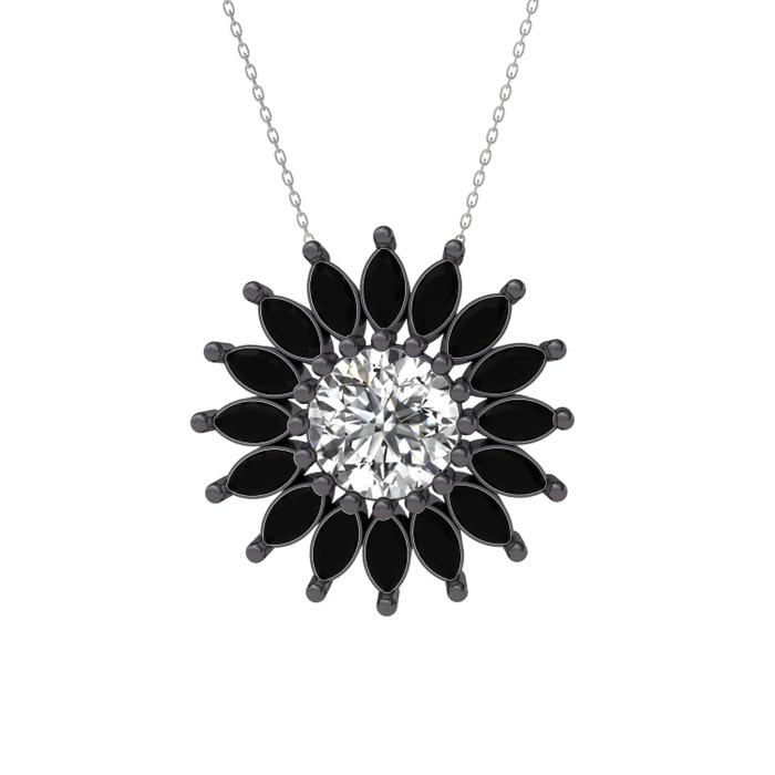 Swarovski ve siyah zirkon 925 ayar siyah rodyum kaplama gümüş kolye (40 cm beyaz altın rolo zincir)