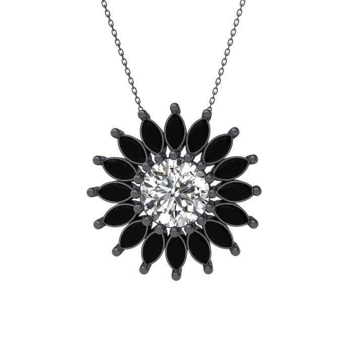 Swarovski ve siyah zirkon 925 ayar siyah rodyum kaplama gümüş kolye (40 cm gümüş rolo zincir)
