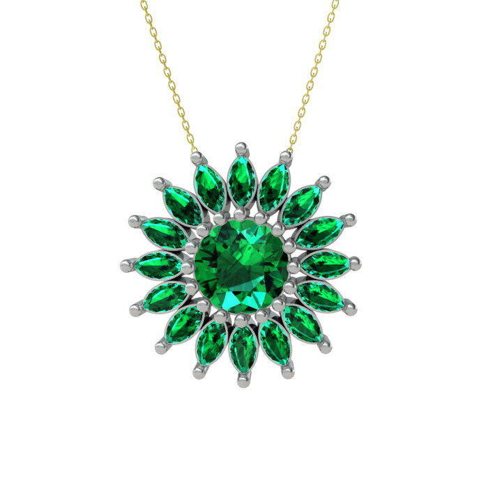 Yeşil kuvars 8 ayar beyaz altın kolye (40 cm altın rolo zincir)