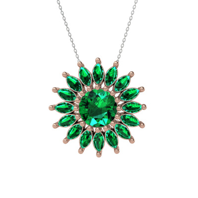 Yeşil kuvars 8 ayar rose altın kolye (40 cm beyaz altın rolo zincir)