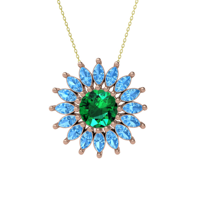 Yeşil kuvars ve akuamarin 8 ayar rose altın kolye (40 cm altın rolo zincir)