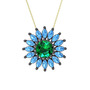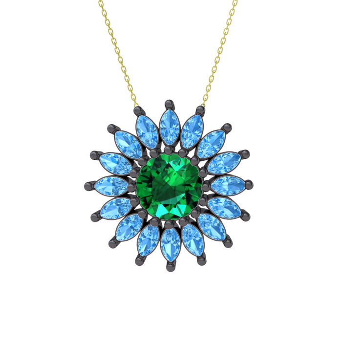 Yeşil kuvars ve akuamarin 925 ayar siyah rodyum kaplama gümüş kolye (40 cm altın rolo zincir)