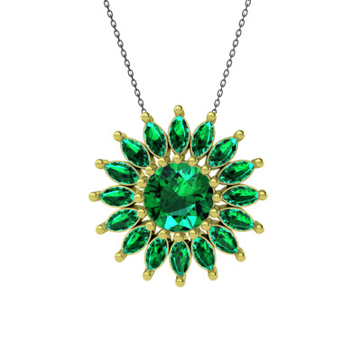 Yeşil kuvars 925 ayar altın kaplama gümüş kolye (40 cm gümüş rolo zincir)