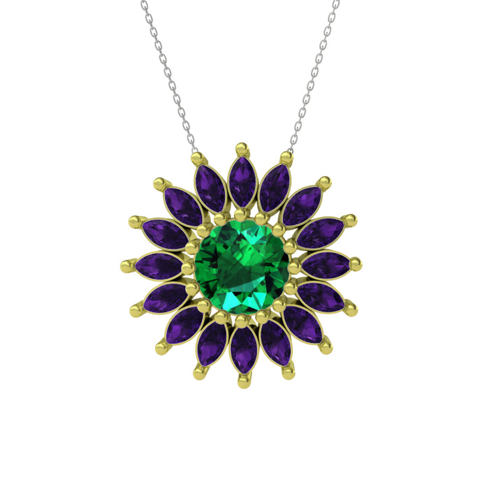 Yeşil kuvars ve ametist 18 ayar altın kolye (40 cm beyaz altın rolo zincir)