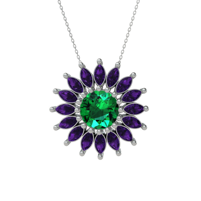 Yeşil kuvars ve ametist 8 ayar beyaz altın kolye (40 cm beyaz altın rolo zincir)