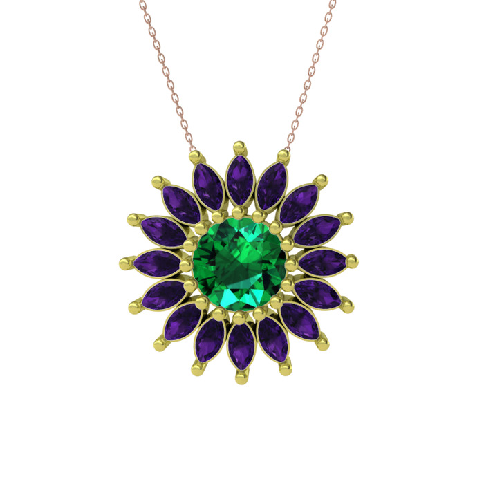 Yeşil kuvars ve ametist 925 ayar altın kaplama gümüş kolye (40 cm gümüş rolo zincir)