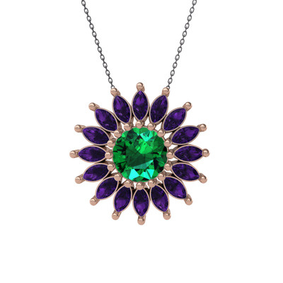 Yeşil kuvars ve ametist 925 ayar rose altın kaplama gümüş kolye (40 cm gümüş rolo zincir)