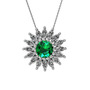 Yeşil kuvars ve beyaz zirkon 14 ayar beyaz altın kolye (40 cm gümüş rolo zincir)