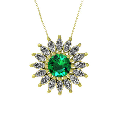 Yeşil kuvars ve beyaz zirkon 18 ayar altın kolye (40 cm gümüş rolo zincir)