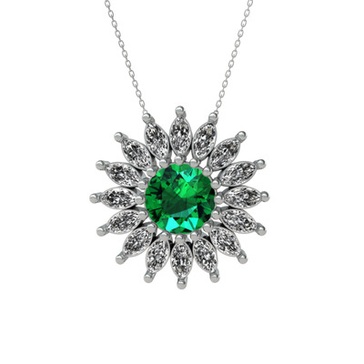 Yeşil kuvars ve beyaz zirkon 18 ayar beyaz altın kolye (40 cm beyaz altın rolo zincir)