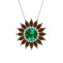Yeşil kuvars ve dumanlı kuvars 14 ayar beyaz altın kolye (40 cm gümüş rolo zincir)