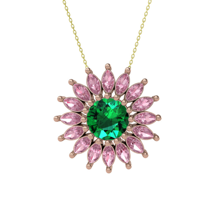 Yeşil kuvars ve pembe kuvars 14 ayar rose altın kolye (40 cm altın rolo zincir)