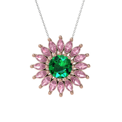 Yeşil kuvars ve pembe kuvars 18 ayar rose altın kolye (40 cm beyaz altın rolo zincir)