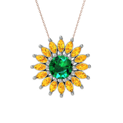 Yeşil kuvars ve sitrin 8 ayar beyaz altın kolye (40 cm rose altın rolo zincir)