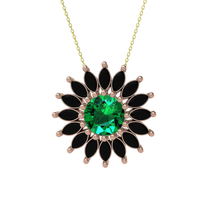 Yeşil kuvars ve siyah zirkon 925 ayar rose altın kaplama gümüş kolye (40 cm altın rolo zincir)
