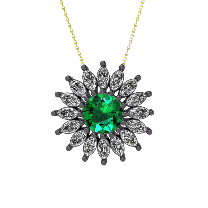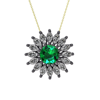 Yeşil kuvars ve swarovski 925 ayar siyah rodyum kaplama gümüş kolye (40 cm altın rolo zincir)