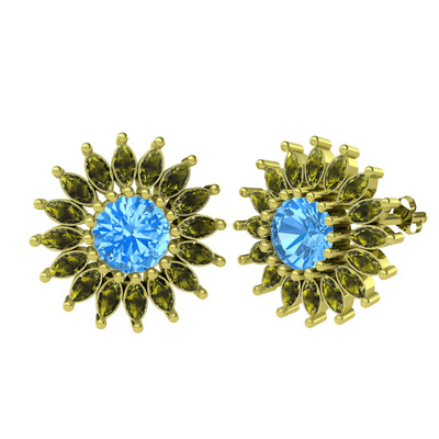 Akuamarin ve peridot 925 ayar altın kaplama gümüş küpe