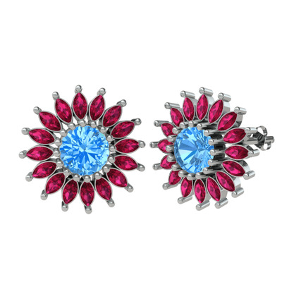 Akuamarin ve rodolit garnet 18 ayar beyaz altın küpe