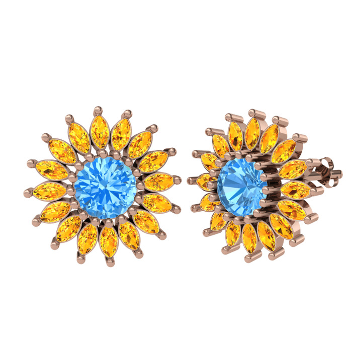 Akuamarin ve sitrin 8 ayar rose altın küpe