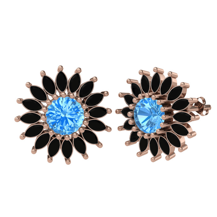 Akuamarin ve siyah zirkon 14 ayar rose altın küpe