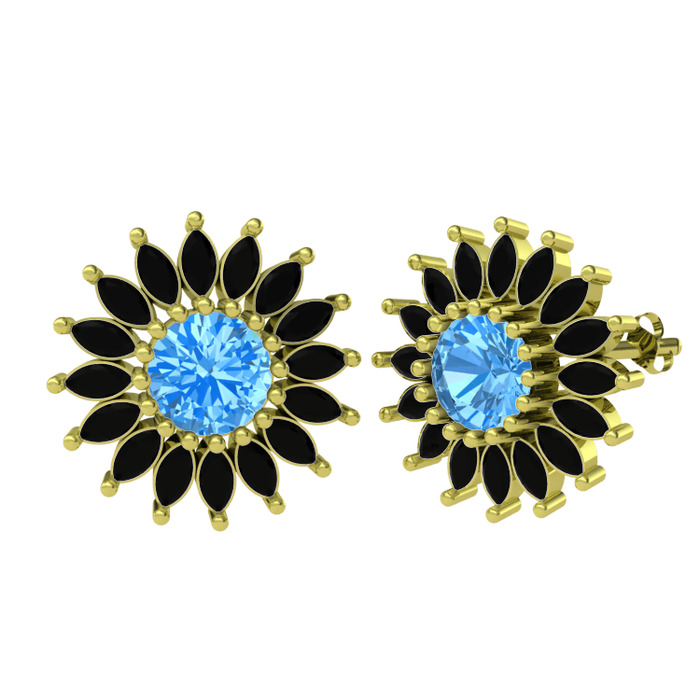 Akuamarin ve siyah zirkon 925 ayar altın kaplama gümüş küpe