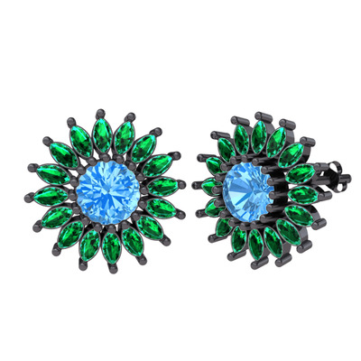 Akuamarin ve yeşil kuvars 925 ayar siyah rodyum kaplama gümüş küpe