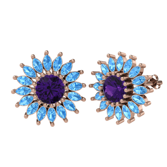 Ametist ve akuamarin 14 ayar rose altın küpe