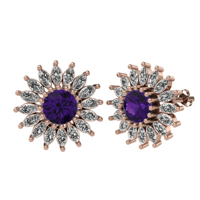 Ametist ve beyaz zirkon 14 ayar rose altın küpe